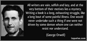 Vain, selfish and lazy? Speak for yourself Eric Blair aka George Orwell. Most writers I know are none of those things. These days the only people you will come across like that are certain editors and literary agents as well as some professional critics. The latter category, especially the odd one or two who write for newspapers and literary magazines here in the UK, can definitely be said to be vain and selfish. To those two unsavoury qualities I would add a few others – condescending, snobbish, scathing and vicious, particularly when it comes to one leading newspaper’s literary critic and his deep loathing of Indies. Compared to him, internet trolls are rank amateurs.
